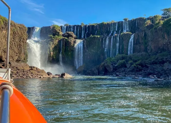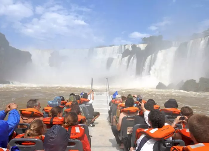 Du får se de gigantiske vannfallene nedenfra, og til slutt går båten under en av de mindre fossene. Så da kan du skryte av at du har dusjet i Iguazú-vannfallene! Men det er selvfølgelig helt frivillig å stille seg rett under vannmassene. Uansett vil du bli gjennomvåt på denne turen, så det er lurt å enten skifte til badetøy eller å ta på seg en regnponcho. Du får utlevert en vanntett veske til verdigjenstandene dine.
