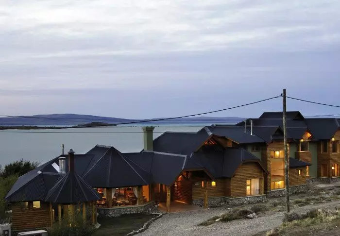 Hotellet ligger vakkert til ved Lago Argentino og er bygget i harmoni med Patagonias naturlige omgivelser.