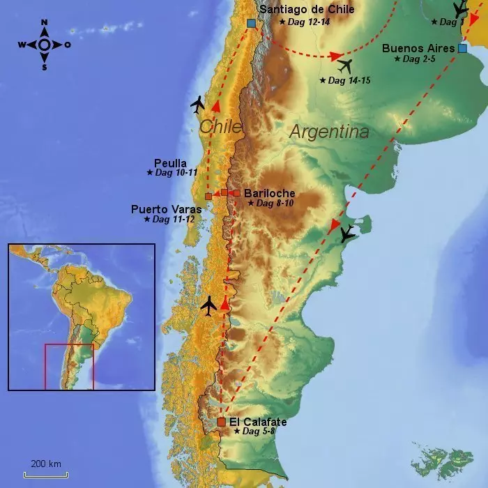 Herfra går turen til Patagonias røffe skjønnhet, med besøk i Los Glaciares nasjonalpark. I nasjonalparken ligger det flere mektige isbreer, bl.a. Perito Moreno. Fra det golde, vindblåste landskapet fortsetter reisen til idylliske Bariloche, omgitt av dypblå sjøer og snødekkede fjelltinder i det frodige sjøhøylandet.