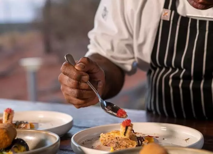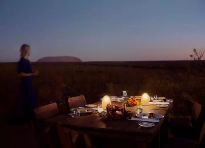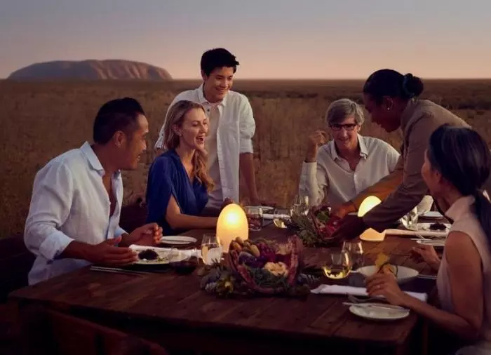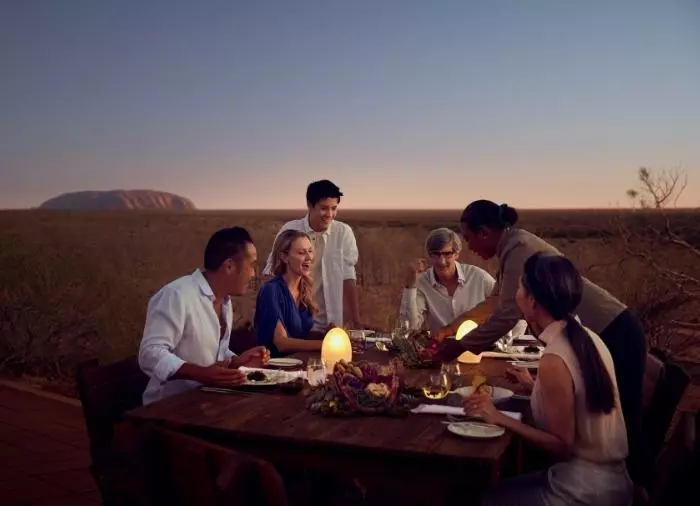 Tali Wiru betyr “vakker sanddyne” på det lokale språket, Anangu. Du ønskes velkommen med champagne. Til lyden av den magiske didjeriduen nyter du synet av solnedgangen over Uluru. Når kvelden faller på, er tiden kommet til å bli kjent med den vakre sanddynen. Her venter bordet ditt, dekket til en flott 4-retters meny. Vinen er tilpasset maten, og her kan du glede deg til kulinariske overraskelser! Både maten og vinen er naturligvis australske, og denne middagen er en god anledning til å bli kjent med noen av Australias forskjellige vinregioner.