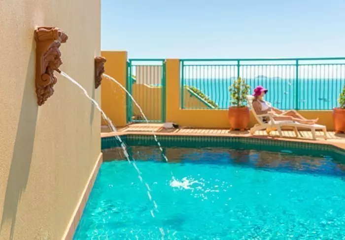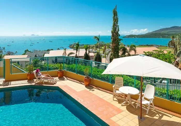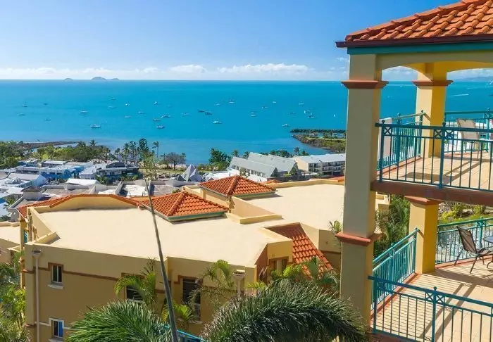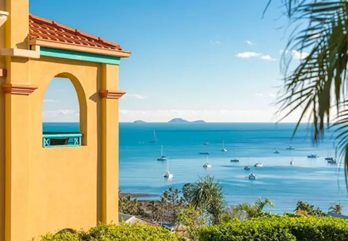 Toscana Village Resort har en fantastisk beliggenhet på en filten ås, med panoramautsikt over byen og Korallhavet med Whitsunday-øyene i bakgrunnen.