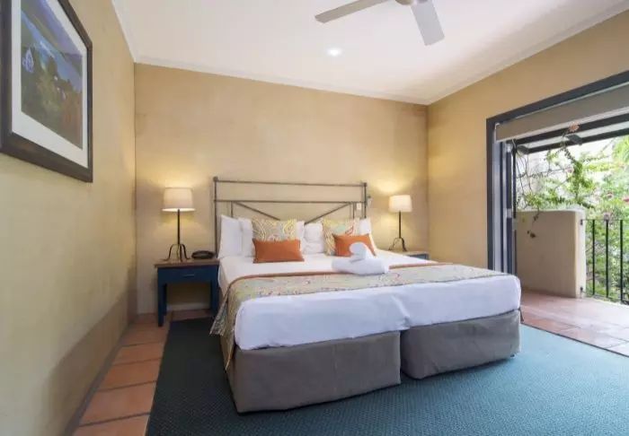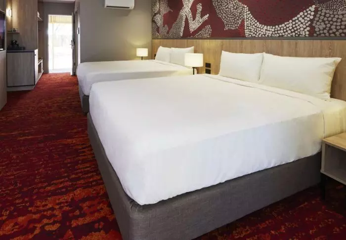 Mens man utendørs prøver å skjerme gjestene litt mot Australia, ønsker man innendørs, på rommene, virkelig velkommen til Australia. Veggene er prydet med lokal kunst, og det er ingen tvil om hvor du er. Rommene er store, og de har alle et sitteområde der du kan slappe av med en god bok og terrasse eller balkong. Her er det alle tenkelige fasiliteter – og naturligvis gratis Wi-Fi.