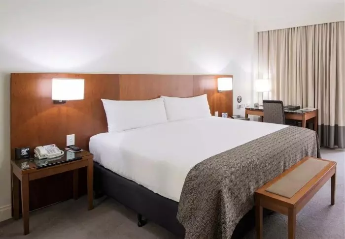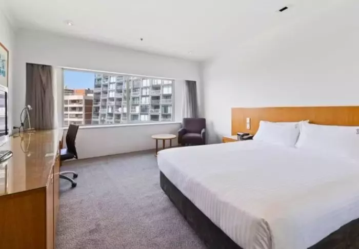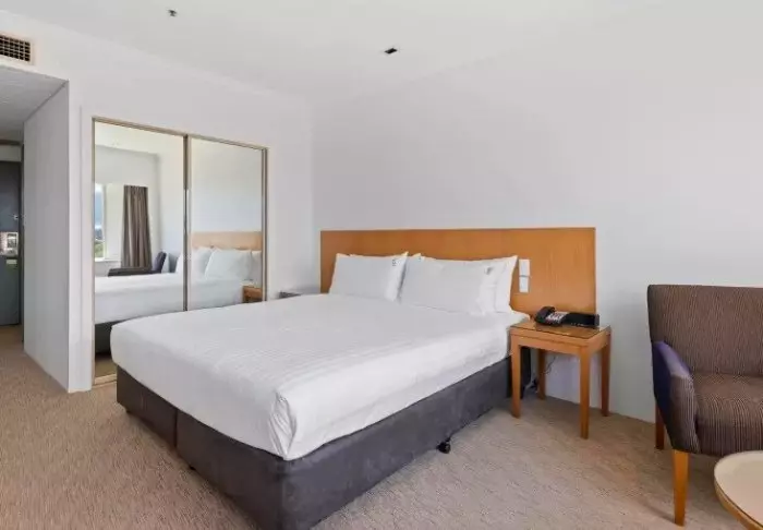 Holiday Inn har 226 rom med store vinduer fra gulv til tak, der lyset flommer inn i rommet. Alle rom har aircondition, safe, strykejern- og brett, te- og kaffefasiliteter, minikjøleskap, flatskjerm-TV samt gratis Wi-Fi. Frokosten på hotellet er inkludert i prisen, og det er faktisk helt uvanlig i Australia!