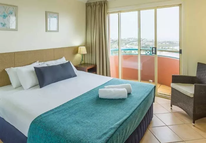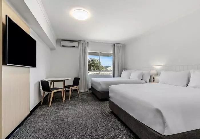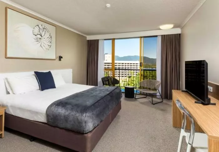 Hotellets 200 rom er store og elegant innredet, og alle rom har flott utsikt, enten over byen, Castle Hill, Magnetic Island eller elven. Alle rom er praktisk utstyrt med det du trenger til et komfortabelt opphold: gratis Wi-Fi, flatskjerm-TV, kjøleskap, kaffe- og tefasiliteter samt et moderne bad med hårtørker og gratis toalettartikler.