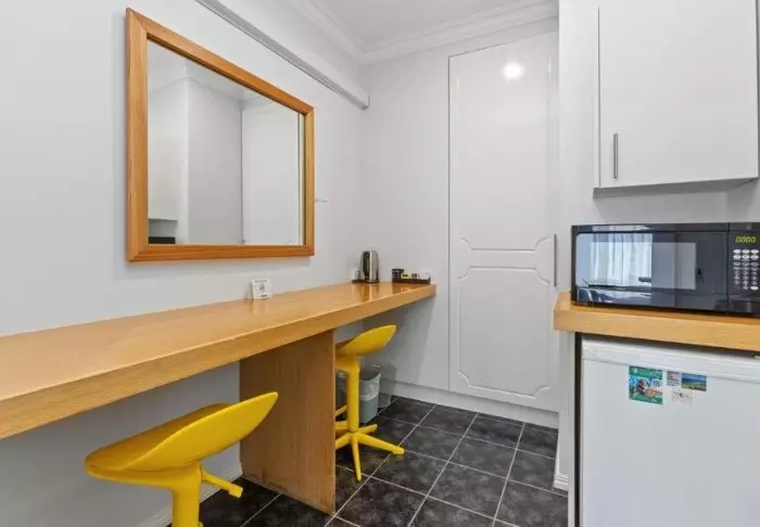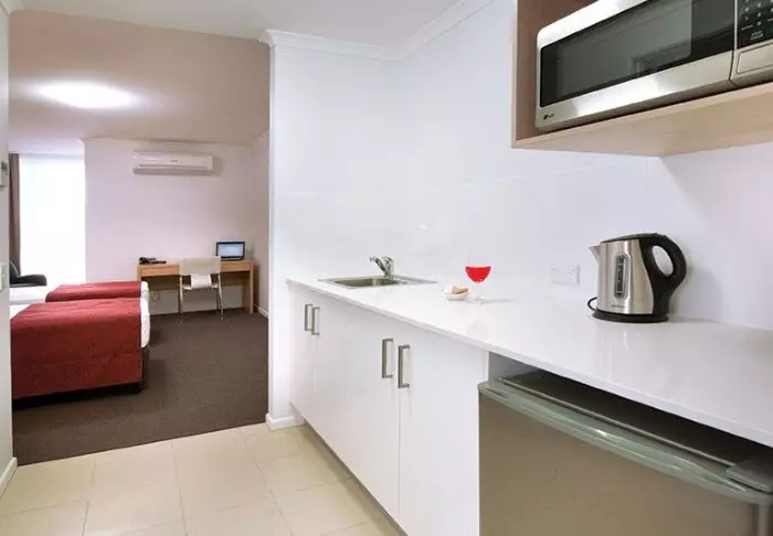 Alle rommene her har eget kjøkken med mikrobølgeovn, kjøleskap, kokeplate og te- og kaffefasiliteter. I tillegg har rommene aircondition, strykejern og -brett, flatskjerm-TV samt gratis Wi-Fi.