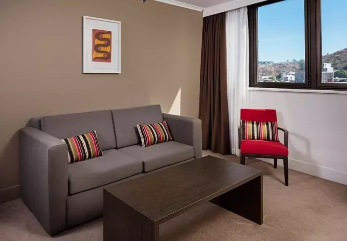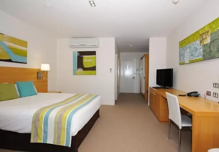 The Edge Apartment Hotel ligger i sentrum av Rockhampton, like ved Fitzroy-elven som snor seg gjennom byen. Hotellets rom er innredet i en moderne og enkel stil og er et perfekt sted å trekke seg tilbake etter en opplevelsesrik dag. Alle rom har praktiske fasiliteter som gir deg et behagelig opphold, blant annet et lite tekjøkken med blant annet mikrobølgeovn, brødrister, minikjøleskap og servise. I tillegg er rommet utstyrt med Wi-Fi, flatskjerm-TV, strykejern og strykebrett, aircondition. På badet finner du hårtørker og diverse toalettartikler. Standardrommet er et såkalt studiorom, men det er mulig å oppgradere til et større rom med ekstra stue og balkong.