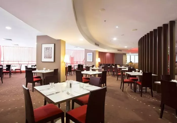 Hotellet har også en egen restaurant som både serverer frokost og middag – og cocktails. Det siste er kanskje spesielt verdt å nevne fordi restauranten ligger i 22. etasje, og derfor har en flott utsikt over byen – særlig i solnedgangslyset! Hotellet har også basseng og treningsrom, og overalt på hotellet er det Wi-Fi.