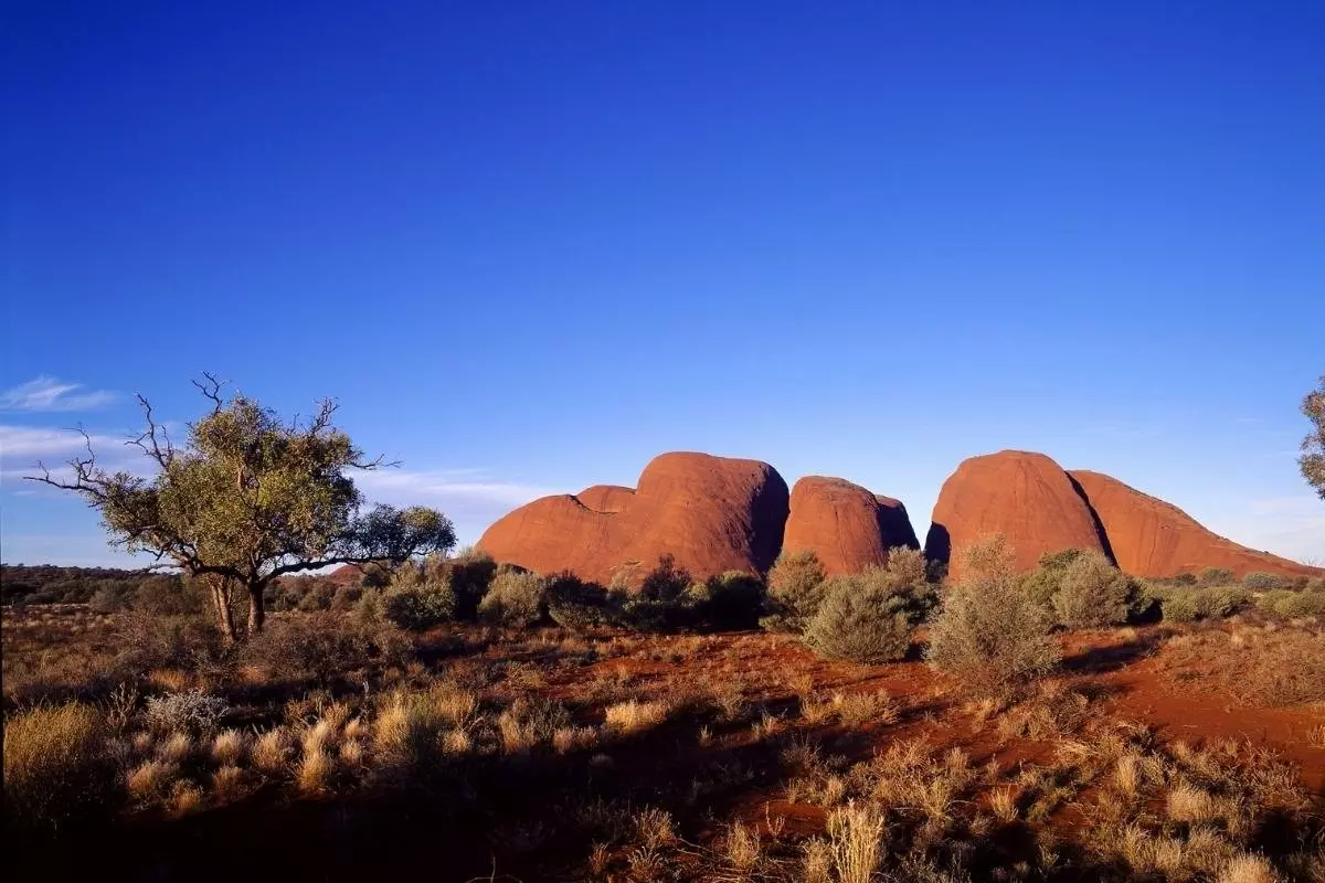 Fra Uluru fortsetter du videre til klippeformasjonene Kata Tjuta, som ligger vel 50 km mot vest. Kata Tjuta betyr “mange hoder”, og på avstand ser du tydelig hvordan de 36 runde klippene ligner isser som stikker opp i landskapet.