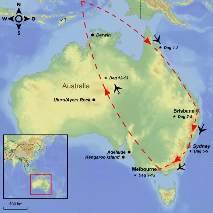 Reisen går til Australias tre største byer: Brisbane, Sydney og Melbourne.