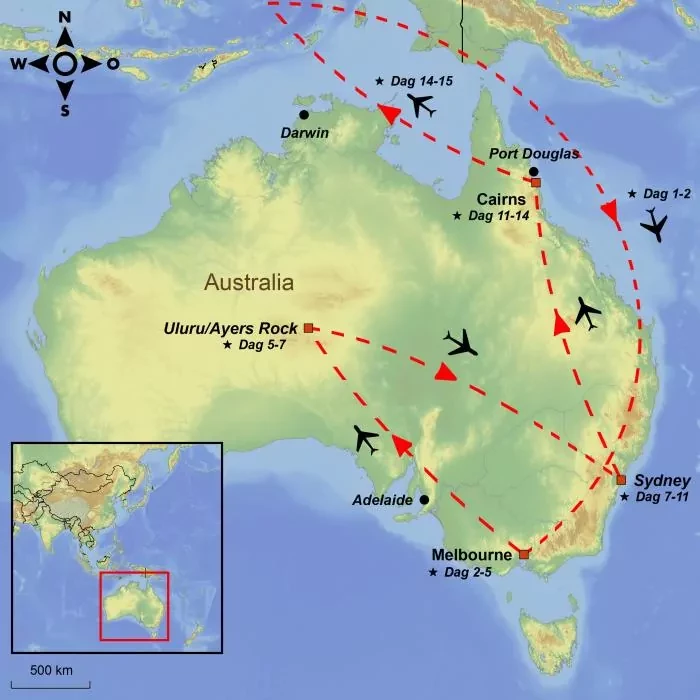 Opplev Australias store kontraster. Fra landets to største byer, Melbourne og Sydney, til den røde ørkenen med Uluru. Avslutt reisen i tropiske Cairns og utforsk Great Barrier Reef eller verdens eldste regnskog.