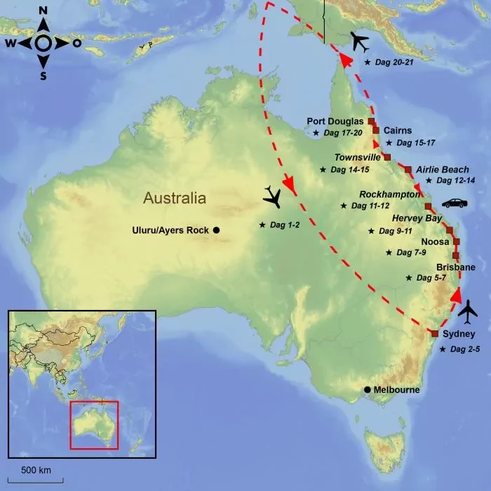 Reisen starter i Sydney, der du selvfølgelig opplever byens høydepunkter som operahuset, Darling Harbour, The Rocks og Bondi Beach.