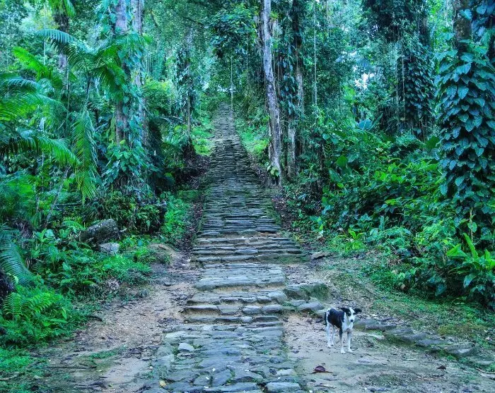 Det siste stykket inn til Lost City foregår i en bratt trapp med 1 200 trinn av forskellige former og størrelser. Turen opp trappen er hard, men når du når opp til toppen, kan du klappe deg selv på skulderen og la deg imponere av det imponerende synet som møter deg. Dette 35 hektar store området består av et komplekst system av bygninger, veier og trapper som er forbundet av mer enn 150 terrasser, plasser og steinveier som ligger spredt opp- og nedover fjellsidene. Fra toppen har du en fantastisk utsikt over den tette jungelen og det imponerende ruinanlegget.