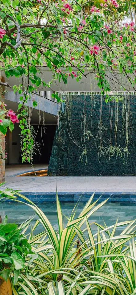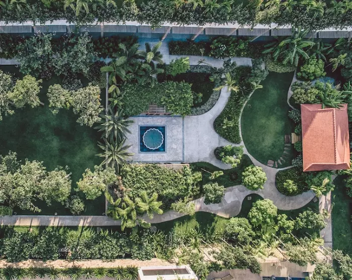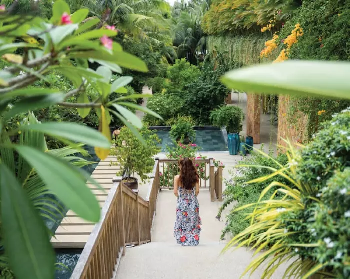 Salinda Resort er designet for å gli naturlig inn i omgivelsene. Arkitekturen tar utgangspunkt i lokale materialer og håndverk, og bygningene er plassert med respekt for øyas landskap og vegetasjon. De grønne områdene er bevart og integrert i resortets uttrykk, slik at planter og trær ikke bare er dekorasjon, men en levende del av helheten. Det gir skygge, naturlig kjøling og leveområder for det lokale dyrelivet, og reduserer samtidig behovet for energikrevende løsninger.