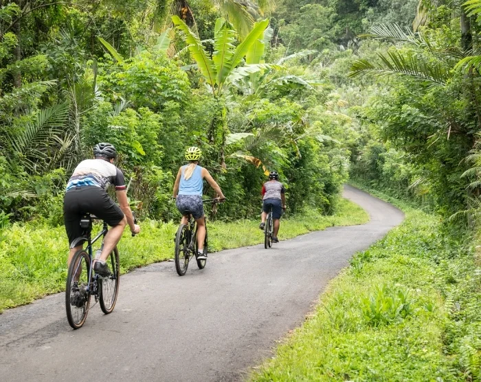 Turen fortsetter ned gjennom grønne rismarker, der landskapet åpner seg og tempoet naturlig senkes. I enden venter Virgin Beach med sitt klare, blå vann og de mørke, vulkanske klippene som danner en vakker ramme rundt stranden. Stranden er bred og lys, med finkornet sand, og her er det tid til både soling og en forfriskende dukkert før du får servert en autentisk lunsj med ferskfanget fisk og lokalt tilbehør.