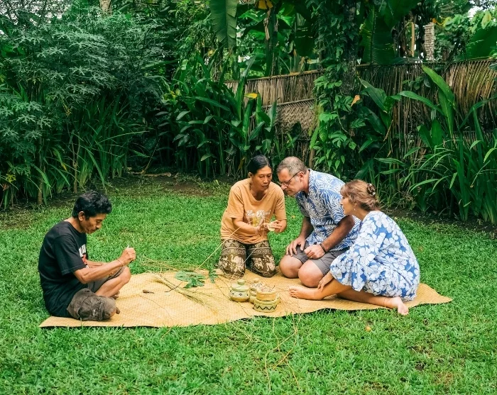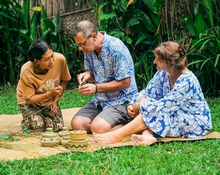 Du slår deg ned i rolige omgivelser i det balinesiske landskapet, der håndverk fortsatt er en naturlig del av hverdagen. Aktiviteten foregår ved eller i nærheten av lokalsamfunnets forsamlingshus, hvor du i uformelle rammer får innblikk i en levende håndverkstradisjon. Sammen med erfarne, lokale vevere blir du introdusert til balinesisk flettverk og materialene som brukes.