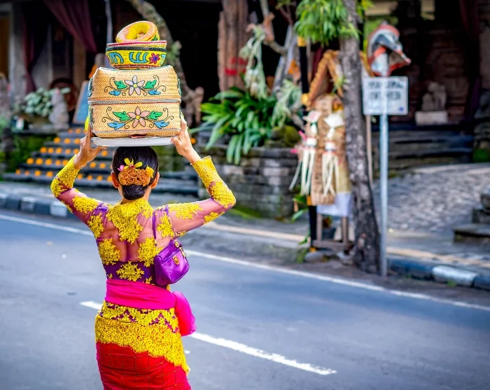 I gatene og templene foregår det ofte seremonielle opptog, noe som kan være spennende og stemningsfullt å overvære. Balineserne er kledd i sine flotte, tradisjonelle drakter, og på fortauene ligger det små, flettede kurver av bananblader. De inneholder offergaver og røkelsespinner som skal beskytte mot det onde.