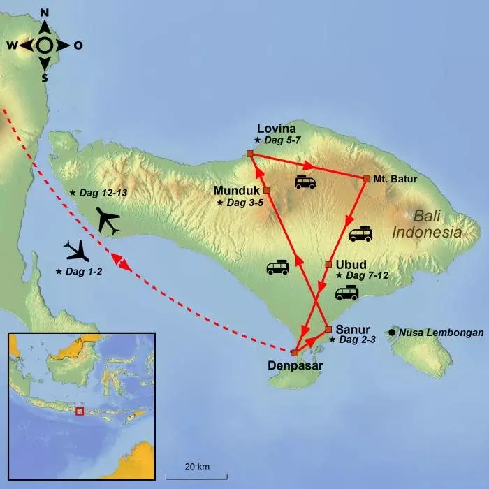 Reisen starter med en overnatting i badebyen Sanur, der du kan slappe av etter den lange flyreisen og venne deg til tidsforskjellen, før reisens program starter for alvor.
