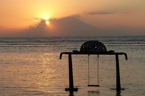 Om dagen er atmosfæren avslappet, og om kvelden er det god stemning og livsglede på de mange små restaurantene og barene. På vestsiden av øya kan du beundre de vakre solnedgangene over Bali, og hvis du er heldig og været er klart, vil du også kunne se solen gå ned bak vulkanen Mt. Agung på Bali. Det er en opplevelse du aldri glemmer! Her er det ingen asfalterte veier og biler, men i stedet sykler og hestevogner.