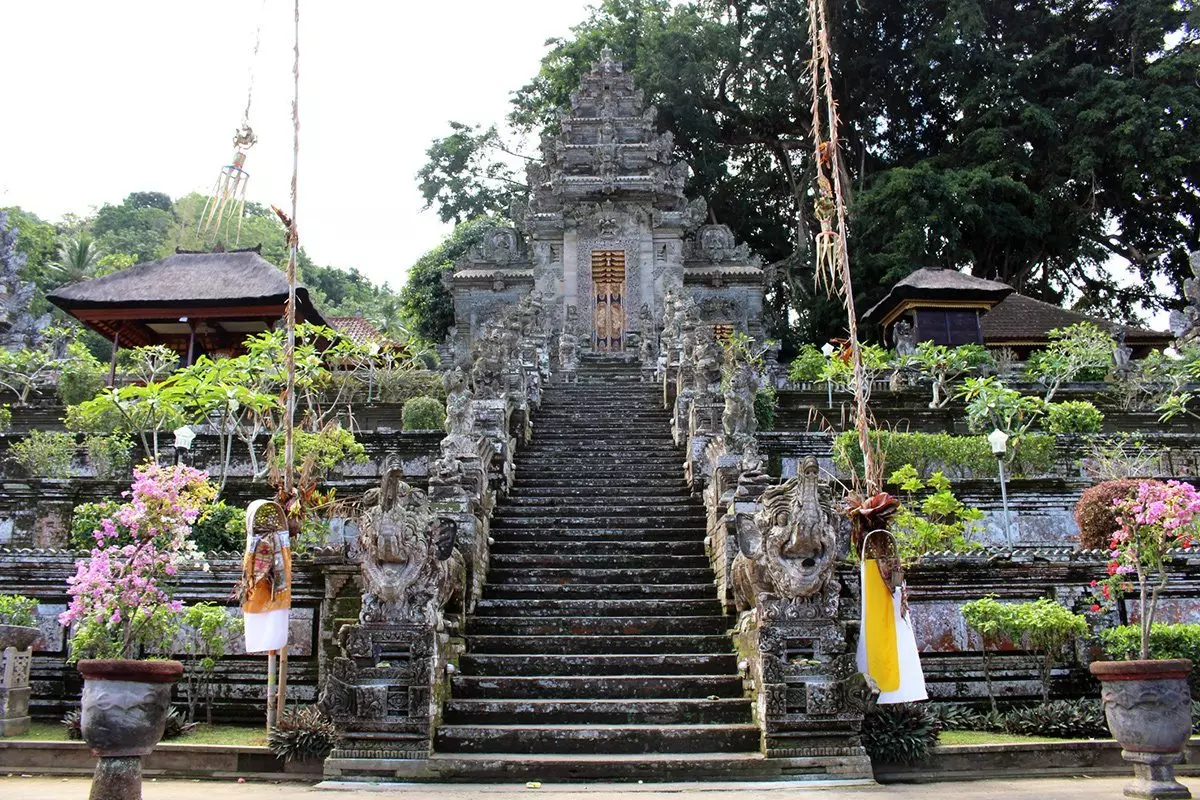 På veien besøker du det storslåtte tempelanlegget Besakih. Man vet ikke nøyaktig hvor gammelt tempelet er, men steinfundamentet antas å være mer enn 2000 år gammelt. Besakih ligger utrolig vakkert til, ved foten av den majestetiske vulkanen Mt. Agung. Vulkanen hadde et voldsomt utbrudd i 1963 som førte til store ødeleggelser. Den ødeleggende lavaen rente mirakuløst utenom Besakih, og det ser man som et tegn fra gudene. Besakih er kjent som mortempelet, og det er Balis største, viktigste og helligste tempel for øyas mange hinduer. Anlegget består av i alt 23 templer og er bygget over seks nivåer i Agung-skråningen – et fantastisk syn. Her føler du virkelig åndenes verden.