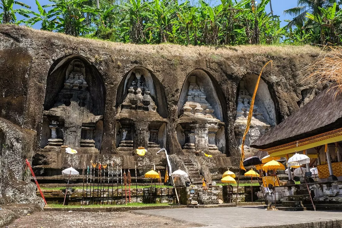 Fra Tirta Empul blir du kjørt til tempelanlegget Gunung Kawi, et av Balis eldste templer. Gunung Kawi ligger i en dal omgitt av frodig jungel, og trapper fører forbi gressgrønne risterrasser og høye palmer ned til selve tempelanlegget. Langs Gunung Kawi renner Pekerisan-elven, og den har en religiøs betydning for de balinesiske hinduene. Det sies nemlig at vann som passerer en helligdom omdannes til vievann. Ved elven skal du over en mindre steinbro for å komme til Gunung Kawis hovedattraksjon, de gamle kongegravene som er hugget inn i klippene. Her får du tid til å gå rundt og nyte det gamle, fredfylte stedet fra det 11. århundre.