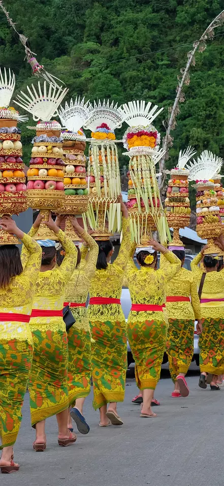 Ubud er en hyggelig by med en helt spesiell sjarm og atmosfære. Religion og tradisjoner spiller en viktig rolle i byen, og i gatene kan du ofte se seremonielle opptog der de balinesiske hinduene, kledd i hvitt, går med store kurver med frukt og blomster på vei til templene. Det er en utrolig flott og stemningsfull opplevelse å overvære en slik prosesjon.