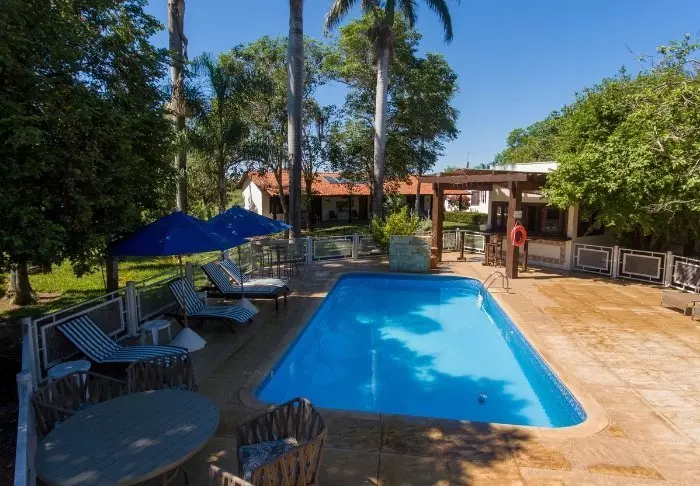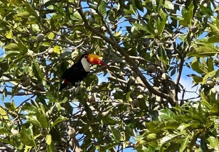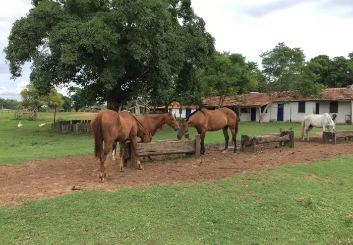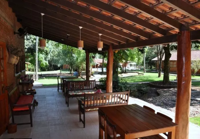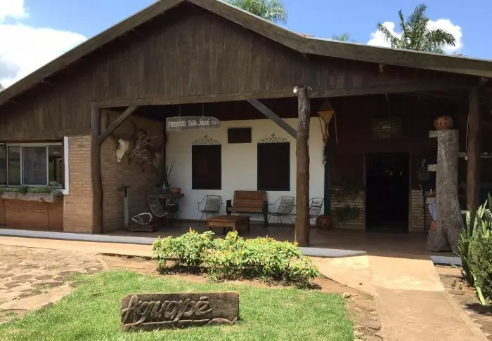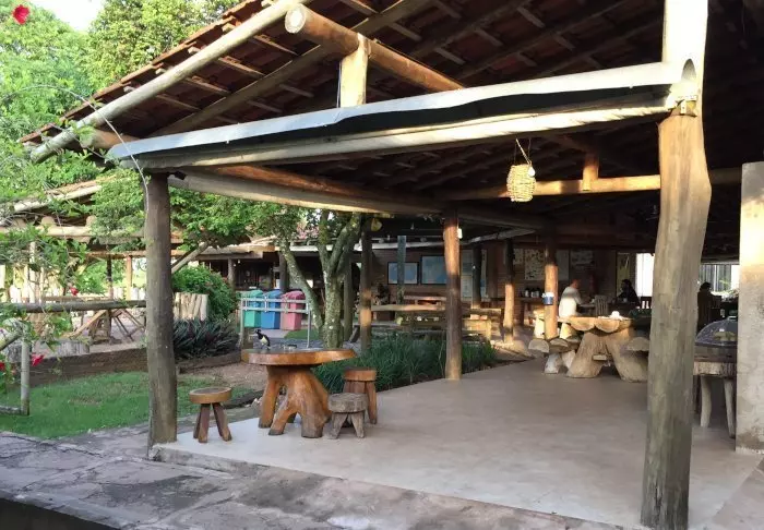 Like utenfor den lille byen Bonito ligger den hyggelige lodgen Olho d’ Água. Lodgen består av mange små hytter og er omgitt av en tropisk have med massevis av flotte fugler.