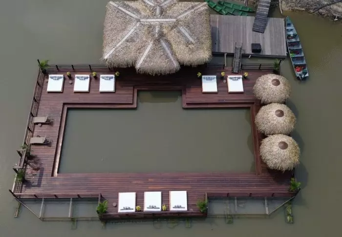 De unike bungalowene er bygget på opptil 15 meter høye påler for å sikre at de ikke blir oversvømt i regntiden, da vannstanden stiger betydelig.