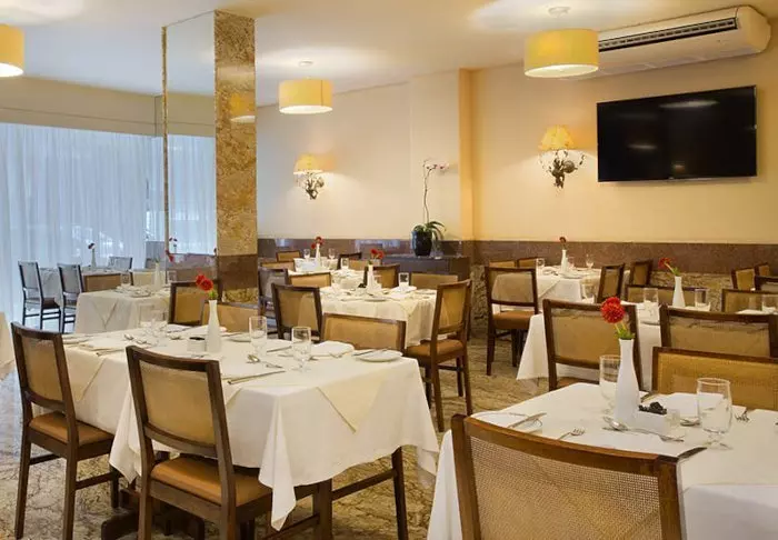 Hotellets restaurant ligger i første etasje, og her serveres det daglig en overdådig frokostbuffet. Restauranten tilbyr også lunsj og middag, men da som à la carte. Er du småsulten, kan du på hotellets takrestaurant og bar bestille lette måltider og forfriskende drikkevarer. Herfra kan du på en klar dag se Kristus-statuen på toppen av Corcovado-fjellet.