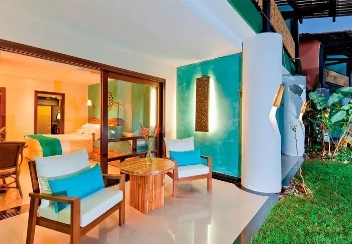 Rommene på resorten er store og smakfullt innredet med pene tremøbler, og veggene er malt i naturlige farger. Alle rom har aircondition, safe, TV og gratis wi-fi samt privat balkong med komfortable loungemøbler og en hengekøye der du kan ligge og slappe av med en god bok.