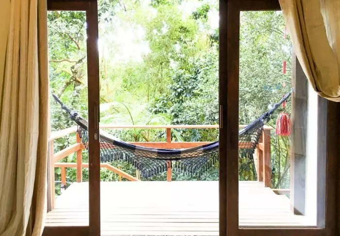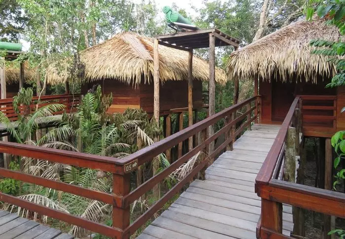 De 21 bungalowene harmoniserer perfekt med omgivelsen, uten å inngå kompromisser med komforten. Alle bungalowene har egne bad med vann oppvarmet av solenergi, en veranda med hengekøyer samt takvifter.