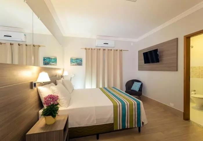 Rommene er ikke så store, men de er vakkert innredet i naturlige materialer med behagelige farger. Alle rommene er utstyrt med eget bad, aircondition, smart-TV, minibar og wifi, og er en utmerket base å trekke deg tilbake til i Rio etter spennende dager fullpakket med opplevelser.