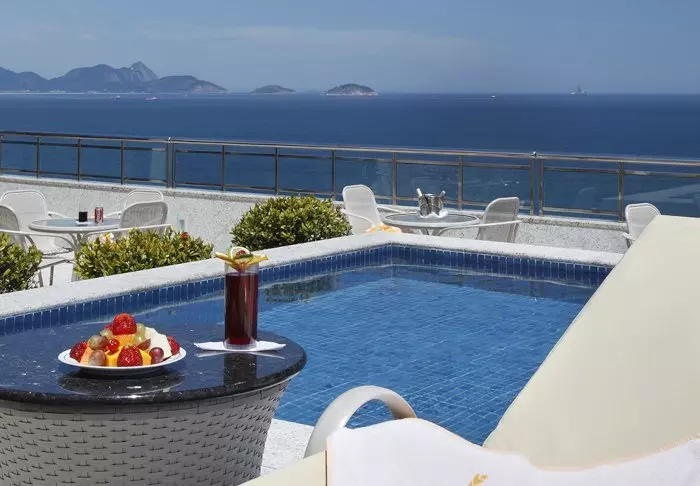 På hotellets takterrasse er det utsikt til havet og Copacabana-stranden. Her er det også et lite treningsrom, et mindre basseng og en bar. Her kan du slappe av med en kjølig drink etter en innholdsrik dag med sightseeing og mange opplevelser i denne pulserende storbyen.