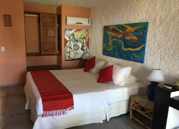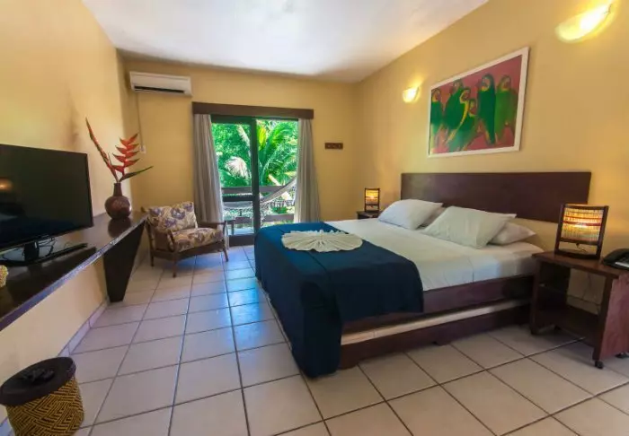 Rommene er enkelt innredet med fargerike bilder fra en lokal kunstner. Alle rom har aircondition, gratis Wi-Fi, TV, safe, hårtørker og minibar. På terrassen eller balkongen kan du slappe av i en hengekøye til lyden av bølgene.