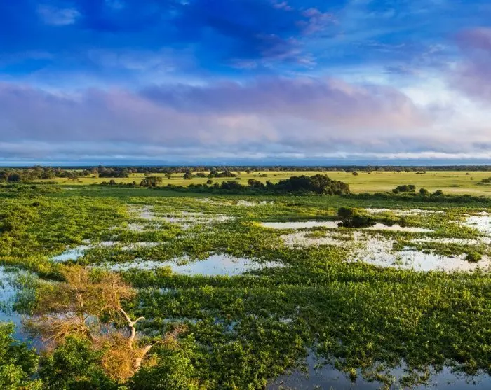 Pantanal betyr sump på portugisisk, og det over 200.000 km² våtområdet er verdens største. Her kan du se både beltedyr, kaimaner, tapirer, maurslukere og kapivarer, som er verdens største gnager. Kattedyr som puma, ozelot og jaguar lever her også her, men man må være litt ekstra heldig for å treffe på dem.