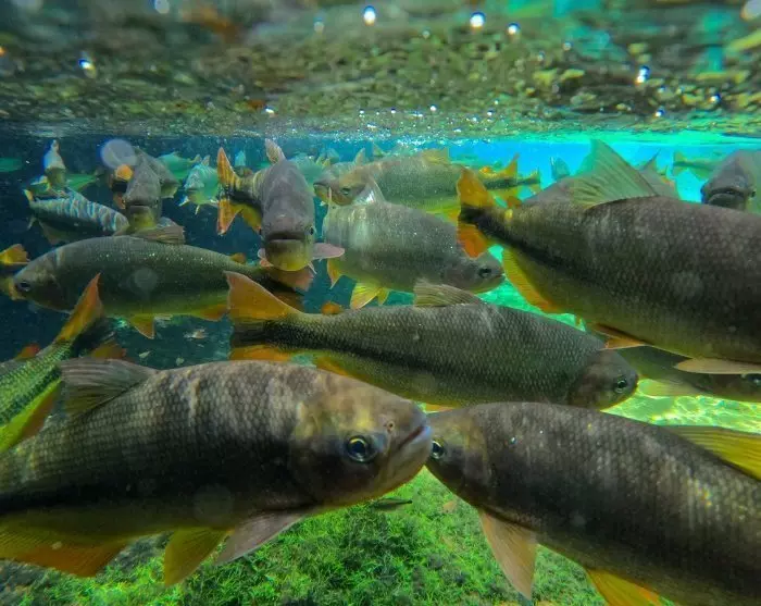 I Bonito venter det snorkling i krystallklare elver blant fargerike fisk og vannplanter og et besøk til det store synkehullet, Buraca das Araras, der de mørkrøde araene (Ara chloropterus) holder til og bygger reir i klippesprekkene.