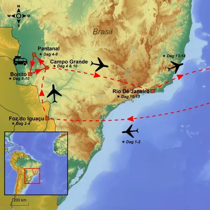 Om morgenen blir du hentet og kjørt tilbake til flyplassen i Campo Grande, der du flyr videre til Rio de Janeiro.