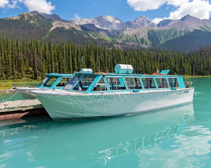 Bli med på en naturskjønn båttur på Maligne Lake, en av de vakreste og mest ikoniske innsjøene i de canadiske Rocky Mountains.