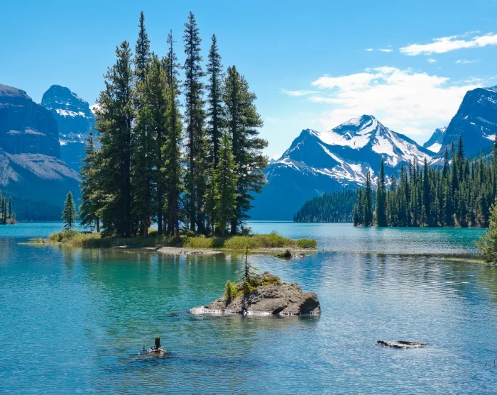 Underveis på båtturen kommer du tett innpå den verdensberømte Spirit Island, som kun kan nås med båt. Her går du i land og har tid til å nyte stillheten, ta bilder og oppleve det spesielle lyset som har gjort øya til et av de mest fotograferte stedene i Canada.