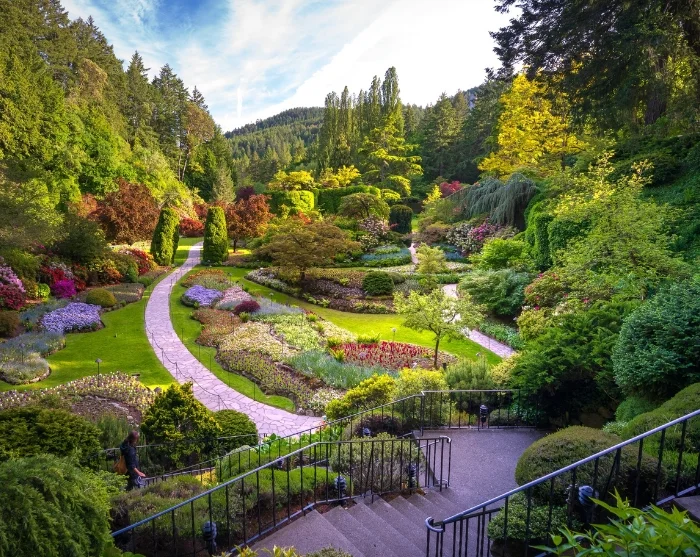 Bli med og oppdag Victorias botaniske hage Butchart Gardens – et nasjonalt, historisk landemerke fylt med fargerike blomsterbed, grønne plener og vakkert anlagte stier.