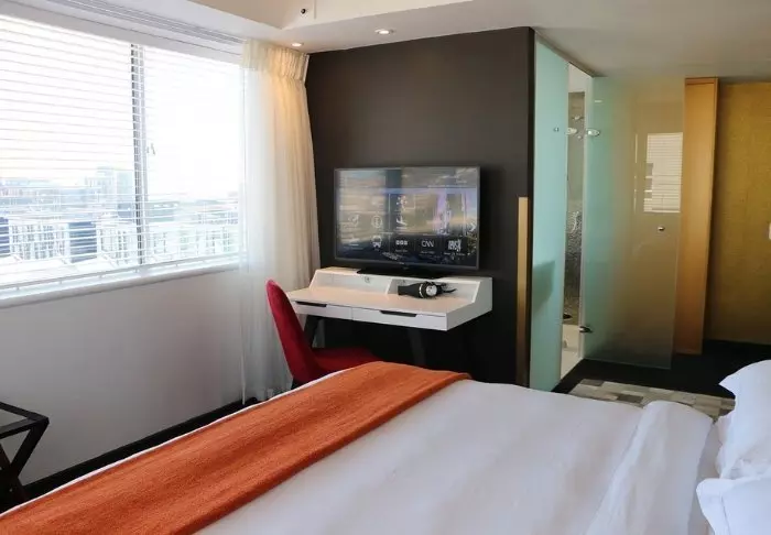 Rommene på hotellet er blant de aller største i byen, og felles for dem alle er at de har egen balkong, Nespresso-maskiner, flatskjerm-TV, badekar og utsikt over det travle livet i havnen.