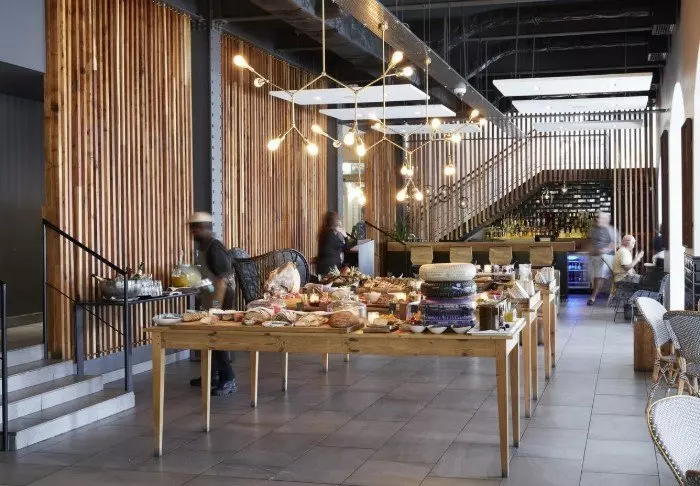 Frokosten serveres i restauranten, som også er åpen om kvelden – og mens rommene har en stilig og nesten klinisk design, er det ingen begrensninger for interiøret i restauranten. I helgene kan du være heldig nok til å høre lokale band som opptrer i restauranten.
