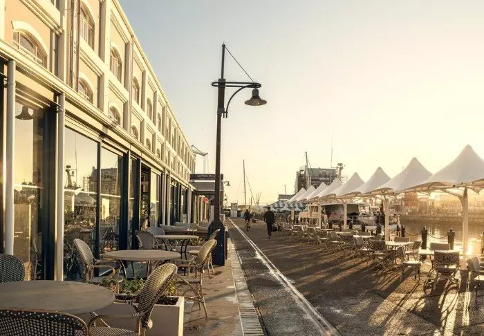 Spaet og svømmebassenget ligger på sin egen øy i havnen og er nærmest omgitt av en tropisk hage – midt i byen. I loungen kan du nyte en cocktail med utsikt mot Table Mountain mens du venter på et bord på Afrikas eneste Nobu-restaurant – den er populær, så bestill i god tid.