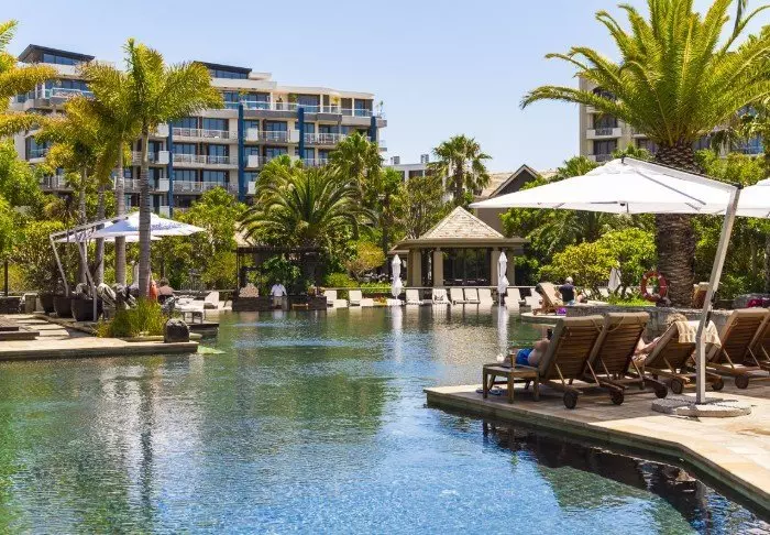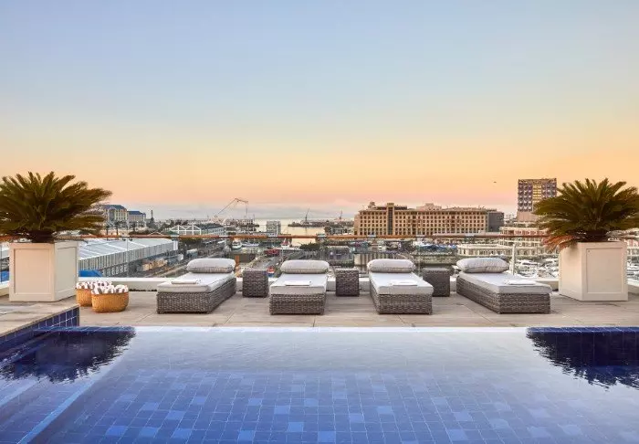 Spaet og svømmebassenget ligger på sin egen øy i havnen og er nærmest omgitt av en tropisk hage – midt i byen. I loungen kan du nyte en cocktail med utsikt mot Table Mountain mens du venter på et bord på Afrikas eneste Nobu-restaurant – den er populær, så bestill i god tid.