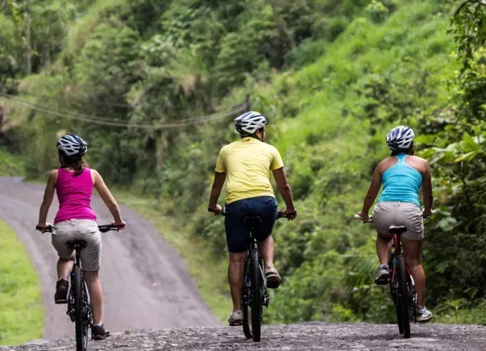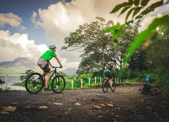 Bli med på en aktiv sykkeltur i den vakre naturen i området rundt Arenal-sjøen.