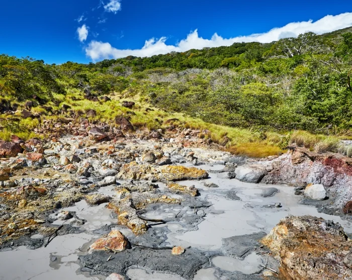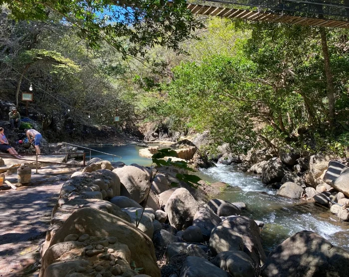 Dagen avsluttes med avslapning i de varme kildene ved Río Negro. De naturlige, mineralrike bassengene varmes opp av vulkanen Rincón de la Vieja og ligger vakkert omgitt av områdets tropiske skog. Her kan du nyte det varme vannet og unne deg et vulkansk gjørmebad, der du smører deg inn i mineralrik leire og skyller den av igjen i det kjølige elvevannet – en naturlig spaopplevelse som etterlater huden myk og fornyet.