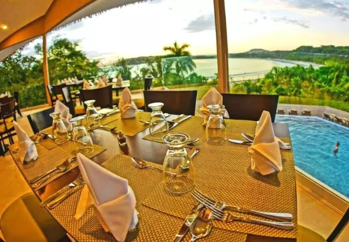 På hotellets restaurant kan du spise den inkluderte frokosten, enten inne eller ute på den overdekte terrassen med en storslått utsikt. På restauranten kan du dessuten smake på både lokale costaricanske retter og retter inspirert av det vestlige kjøkkenet. Hvis du har lyst på en eksotisk cocktail, kan du bestille den i hotellets lille bar, som ligger ved siden av svømmebassenget.