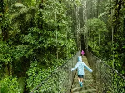 Det unike økosystemet kan enten oppleves med en spennende tur over svevende hengebroer mellom tretoppene, eller på en adrenalinfylt zipline-tur gjennom den frodige regnskogen