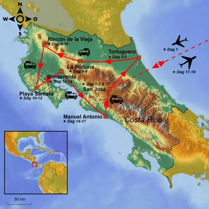 Opplev Costa Ricas unike natur og spennende dyreliv i Tortuguero, ved Arenal-vulkanen, i Rincón de la Vieja og i Monteverdes tåkeregnskog. Nyt livet på deilige strender i Sámara og Manuel Antonio.