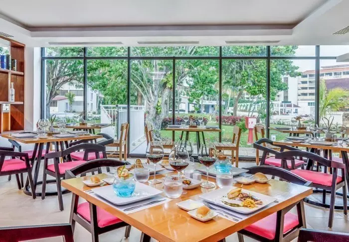 I den hyggelige bakhagen kan du ta deg en matbit på hotellets restaurant eller en mojito i baren i ro og mak. Du kan også sitte og se på folkelivet på Plaza de la Solidaridad mens du spiser frokost, lunsj eller middag på hotellets restaurant som både har et innendørs og et utendørs område.