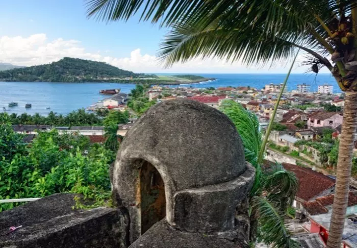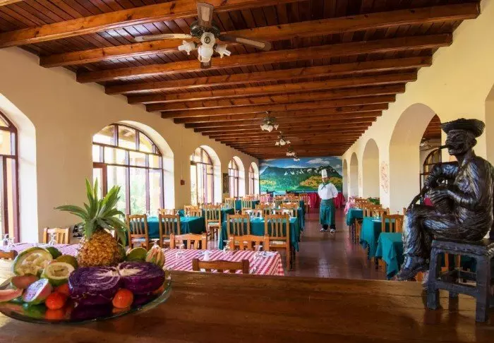 I restauranten serveres det både kreolske og internasjonale retter. Herfra har du også fantastisk utsikt over byen og fjellene.
